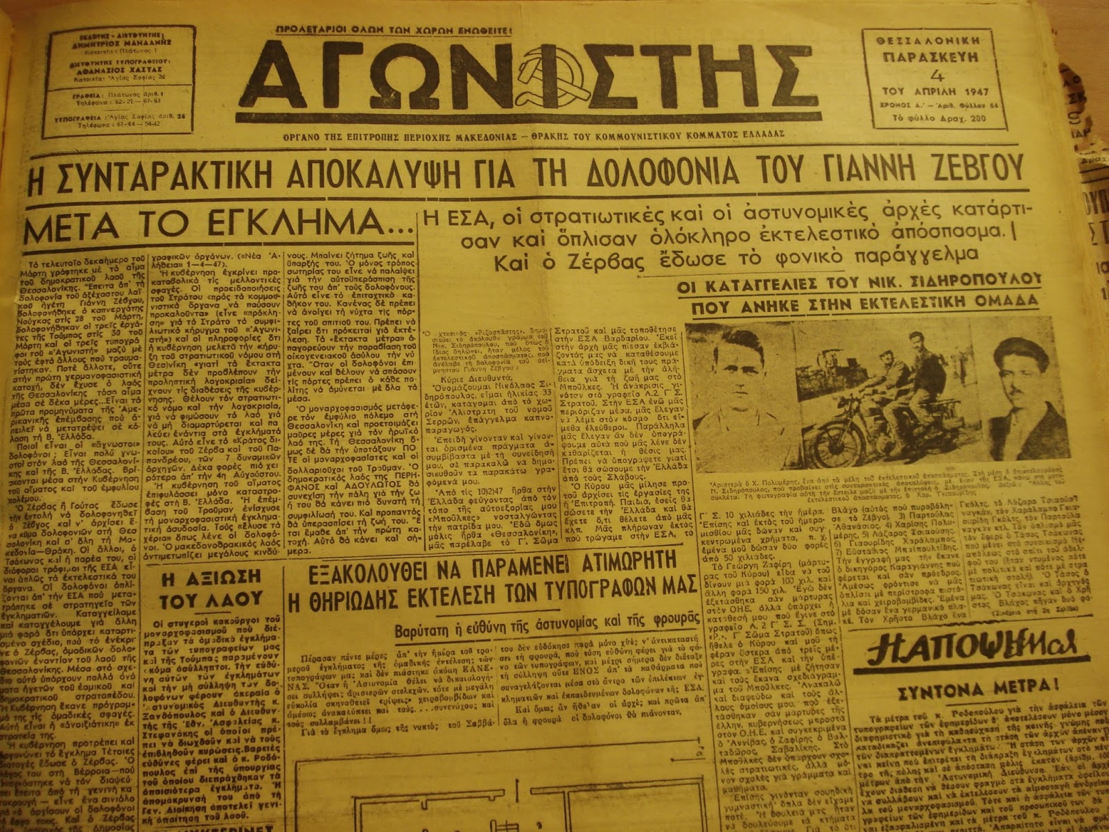 Τέλη Φεβρουαρίου του 1947 φτάνει στη Θεσσαλονίκη ο Γιάννης Ζεύγος, για να παρακολουθήσει εκ μέρους του ΚΚΕ και του ΕΑΜ τις εργασίες της Ερευνητικής Επιτροπής του ΟΗΕ και να καταθέσει σ΄αυτή στοιχεία για τη δράση των παρακρατικών συμμοριών. Δεν θα προλάβει. Και προφητικά ίσως, σε ένα από τα τελευταία του άρθρα που δημοσιεύει στην κομμουνιστική εφημερίδα της Θεσσαλονίκης Αγωνιστής, υπό τον χαρακτηριστικό τίτλο «Όχι άλλο αίμα», σημειώνει στον επίλογο: