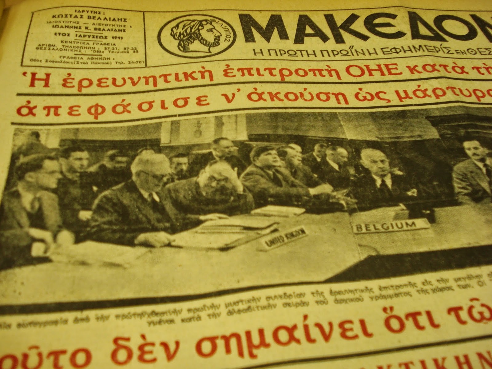 Ο Ζεύγος περί την 11ην π.μ., μετέβη εις τα γραφεία της κομμουνιστικής εφημερίδος «Αγωνιστής», όπου συνέταξεν επιστολήν προς την ενταύθα ευρισκομένην Επιτροπήν Ερεύνης του ΟΗΕ, ως εκπρόσωπος της Κ.Ε. του ΕΑΜ, αναφερομένην εις τας τελευταίας γενομένας εν τη πόλει μας συλλήψεις εαμικών στελεχών, καθώς και τα αιματηρά γεγονότα της Τούμπας. Μετά τούτο, αφού αφήκε την επιστολήν δια να μεταφρασθή εις την γαλλικήν υπό τινος συντάκτου της εν λόγω εφημερίδος, προκειμένου να την υποβάλει εις την Επιτροπήν Ερεύνης, μετέβη εκείθεν εις τι γαλακτοπωλείον της πλατείας Αγίας Σοφίας, όπου εγευμάτισεν.